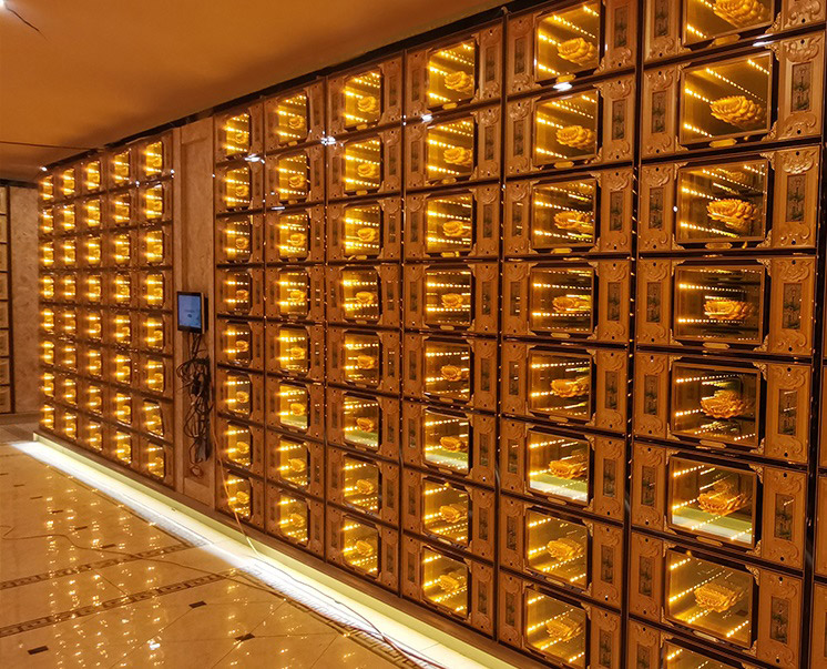 用于殯儀館、骨灰堂等骨灰存放場所,配合平板手機等硬件,完成一次富有儀式感及科技感的的室內(nèi)智能祭拜。